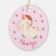 Dieses personalisierte Einhorn-Ornament zeichnet sich durch ein Weihnachtsgeschmack mit Sternen aus. Der Hintergrund ist pastellrosa. Das Design ist auf beiden Seiten des Ornaments gleich. Personalisieren Sie es mit einem Namen.