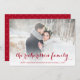 Diese Weihnachtskarte hat ein zusätzliches Maß an Personalisierung - neben Ihrem bevorzugten persönlichen Foto, erscheint Ihr Familienname vor der Karte in der urlaubserroten, modernen Schrift.
