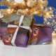 WeihnachtsPackpapier in den eleganten Purpur, im Weiß und im Gold
