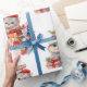 Helles und spielerisches Packpapier zeigt bezaubernde Katzen, die Weihnachtsmannmützen tragen, umgeben von wunderschön verpackten Geschenken. Ideal, um Ihrem Urlaub einen besonderen Charme zu verleihen.