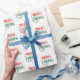 Dieses Urlaubspapier wird mit einem fröhlichen Weihnachtsdruck gezeigt. Farbe Weiß, Matte angezeigt. Passen Sie dieses Objekt an oder kaufen Sie es wie ein Bild aus dem Lager.