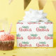 Dieses Urlaubspapier wird mit einem fröhlichen Weihnachtsdruck gezeigt. Farbe Weiß, Matte angezeigt. Passen Sie dieses Objekt an oder kaufen Sie es wie ein Bild aus dem Lager.