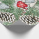 Weihnachtspapier mit Kiefernzapfen, Bögen, Heilige Beeren, Herzen, Schneeflocken. Schönes Weihnachtsgeschenkpapier für die Weihnachtszeit.