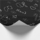 Das festliche schwarze Weihnachtswrapping Paper mit weißen Weihnachtsdoodles und Weihnachtsfestworten auf schwarzem Hintergrund. Weihnachtsbaum, Hirsch, Herz, Geschenke, Baubles, Strümpfe, Schneemänner und vieles mehr. Hintergrund schwarz mit weißen handgezeichneten Elementen.
