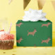Fügen Sie Ihre Weihnachtsgeschenke mit diesem einzigartigen Geschenkpapier mit einem spielerischen und festlichen Taschentuch hinzu! Das Verpackungspapier weist ein bezauberndes Muster von Dackeln auf, die Rentierholz auf einem glänzenden grünen Boden tragen. Ideal für Hundeliebhaber und für alle, die ihre Geschenke mit Fantasiegefühl versehen wollen. Dieses originelle Geschenkpapier wird die Partys absegnen und die Angehörigen zum Lächeln bringen, sobald sie ihre Geschenke unter dem Baum sehen. Lassen Sie Ihre Geschenke mit diesem charmanten und lustigen Design herausheben!
