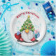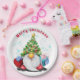 Weihnachtspapier-Teller Gnome mit Geschenk Pappteller