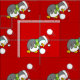 Ein kleiner Pinguin-Cartoon mit Weihnachtsmannmütze und grünem Schal-Biegen, um eine Schneeball zu vermeiden, eine andere. Nahtloses Muster. Benutzerdefinierte Hintergrundfarbe.