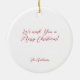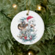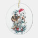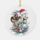 Weihnachtspferd in Weihnachtsmannmütze Cowgirl Cow Keramik Ornament