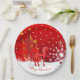 Dieses Weihnachtspapier hat einen vektorillustrationsentwurf, eine rote/weiße Winterwelt mit dekorativen Schneeflocken, Schnee zu zeigen punktiert, Weihnachtsbäume und ein niedliches schön verziertes Pferd. Der Text "frohe Weihnachten" ist Gegenstände einer Schablone und kann in jeden möglichen anderen Text leicht geändert werden. Es ist auch möglich, die Schriftartgröße, die Schriftartfarbe und/oder die Schriftartart zu ändern.