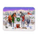 Eine Weihnachtsszene im Winter mit Pferden im Schnee.