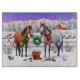 Eine Weihnachtsszene im Winter mit Pferden im Schnee.