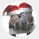 Weihnachtspferde mit Weihnachtsmannmützen Runder Aufkleber