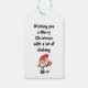 Niedliche Weihnachts-Pickleball-Geschenkmarken mit Santa spielen pickleball auf weißem Hintergrund.