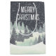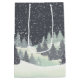 Kiefernlandschaft in Schneeflocken auf dunkelgrauem Hintergrund. Text kann geändert werden. Die Hintergrundfarbe kann geändert werden.