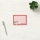 Weihnachtspinguin bekommt eine Schneeball Post-it Klebezettel