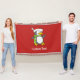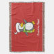 Ein kleiner Pinguin-Cartoon mit Weihnachtsmannmütze und grünem Schal, der auf Schnee geht.