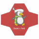 Ein kleiner Pinguin-Cartoon mit Weihnachtsmannmütze und grünem Schal, der auf Schnee geht.