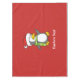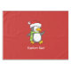 Ein kleiner Pinguin-Cartoon mit Weihnachtsmannmütze und grünem Schal, der auf Schnee geht.