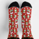 Nahtlose niedliche und fröhliche kleine Pinguine Cartoon Hintergrund mit Weihnachtsmannmützen und Schals und mit Schneebällen spielen. Nahtloses Muster. Benutzerdefinierte Hintergrundfarbe. Benutzerdefinierte Farbe des oberen Streifens. Benutzerdefinierter Text auf jeder Socke.