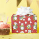 Nahtlose niedliche und fröhliche kleine Pinguine Cartoon Hintergrund mit Weihnachtsmannmützen und Schals und mit Schneebällen spielen.