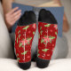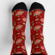 Handgezeichnet Weihnachtspoinsettien und Heilige in einem nahtlosen Muster mit dunkelrotem Hintergrund.