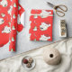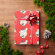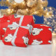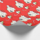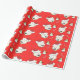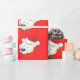 Niedlicher Urlaub Eisbär in Santa Cap. Tanzschneemann und Bonbons auf einem fröhlich roten Hintergrund