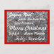 Weihnachtspostkarte, Schwarz-Weiß-Foto mit Eisbezug, "Frohe Weihnachten" auf dem Foto in mehreren Sprachen gedruckt, schmaler Rotweinrahmen (die Grenzfarbe kann geändert werden) - hinten ist rot und leer