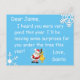 Die Vorderseite dieser Postkarte hat einen Brief von Santa Clause. Der Rücken hat einen Platz für Ihr Kind, "seine Wunschliste zu schreiben". Schicken Sie es in der Mail an den Weihnachtsmann!