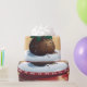 Ein lustiges Bild von Weihnachtspudding unter einer Glaskuppel.