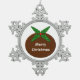 Dieses phantastische Ornament besticht durch einen schokoladenbraunen Weihnachtsbaum mit einem Hauch von Heiligen. Auf dem Pudding ist ein weißer Text, der an mattierte Vereisung erinnert und "Frohe Weihnachten" lautet. Der Text ist anpassbar, sodass Sie ihn personalisieren können.