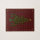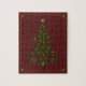 Dieses elegante Design besticht durch einen gesteppten Weihnachtsbaum mit schmuckfarbenen Ornamenten, die darunter geschmückt sind und von einer zarten goldenen filigranen Grenze mit Juwelen an den Ecken umgeben sind.