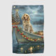 Set segelt mit dieser sehr detaillierten Abbildung in den Zauber der Urlaubssaison und zeigt einen stolzen Hund, der in einem festlich dekorierten Boot sitzt und über einen ruhigen Weihnachtssee gleitet. Die Lichter der nahen Kiefernbäume reflektieren das Wasser und warmen, festlichen Glanz, der das gemütliche Ambiente verstärkt. Die Ornamente versetzen sich von den Seiten des Bootes, während die Laternen leuchten und eine Szene schaffen, die das wahre Wesen der Weihnachtswärme und -freude einfängt. Dieses nostalgische Kunstwerk bringt eine Touch von Urlaubsmagie in jeden Raum, perfekt für diejenigen, die den Geist der Saison schätzen.