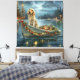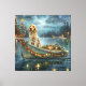 Set segelt mit dieser sehr detaillierten Abbildung in den Zauber der Urlaubssaison und zeigt einen stolzen Hund, der in einem festlich dekorierten Boot sitzt und über einen ruhigen Weihnachtssee gleitet. Die Lichter der nahen Kiefernbäume reflektieren das Wasser und warmen, festlichen Glanz, der das gemütliche Ambiente verstärkt. Die Ornamente versetzen sich von den Seiten des Bootes, während die Laternen leuchten und eine Szene schaffen, die das wahre Wesen der Weihnachtswärme und -freude einfängt. Dieses nostalgische Kunstwerk bringt eine Touch von Urlaubsmagie in jeden Raum, perfekt für diejenigen, die den Geist der Saison schätzen.