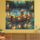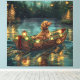 Set segelt mit dieser sehr detaillierten Abbildung in den Zauber der Urlaubssaison und zeigt einen stolzen Hund, der in einem festlich dekorierten Boot sitzt und über einen ruhigen Weihnachtssee gleitet. Die Lichter der nahen Kiefernbäume reflektieren das Wasser und warmen, festlichen Glanz, der das gemütliche Ambiente verstärkt. Die Ornamente versetzen sich von den Seiten des Bootes, während die Laternen leuchten und eine Szene schaffen, die das wahre Wesen der Weihnachtswärme und -freude einfängt. Dieses nostalgische Kunstwerk bringt eine Touch von Urlaubsmagie in jeden Raum, perfekt für diejenigen, die den Geist der Saison schätzen.