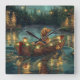 Set segelt mit dieser sehr detaillierten Abbildung in den Zauber der Urlaubssaison und zeigt einen stolzen Hund, der in einem festlich dekorierten Boot sitzt und über einen ruhigen Weihnachtssee gleitet. Die Lichter der nahen Kiefernbäume reflektieren das Wasser und warmen, festlichen Glanz, der das gemütliche Ambiente verstärkt. Die Ornamente versetzen sich von den Seiten des Bootes, während die Laternen leuchten und eine Szene schaffen, die das wahre Wesen der Weihnachtswärme und -freude einfängt. Dieses nostalgische Kunstwerk bringt eine Touch von Urlaubsmagie in jeden Raum, perfekt für diejenigen, die den Geist der Saison schätzen.