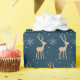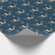 Elegantes, modernes Weihnachts-blaues Geschenkpapier mit einem Rentier- und Schneeflockenmotiv.