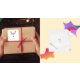 Ein lustiges und niedliches, modernes abstraktes Bild eines Rentierkopfes mit roter Nase. Mit Weihnachtsschmuck, Bausteine hängen von den Antlers. Weißer Hintergrund, Farben: weiß, rot, grau, blau, grün. Geschenke Tag mit roten Buchstaben mit: zu und von. Platz, an dem du mit der Hand schreiben kannst.