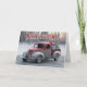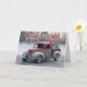 Ein klassischer Vintager LKW in Rot und Silber fährt durch eine schneebedeckte Winterlandschaft, die mit hellen Geschenkartikeln im LKW-Bett beladen ist. Die mattierten Bäume im Hintergrund, gepaart mit der festlichen Weihnachtsbotschaft in fetten Briefen, schaffen eine nostalgische Urlaubsszene, die die Wärme und Freude der Weihnachtszeit einfängt. Diese Karte verbindet altmodischen Charme mit der Begeisterung des Geschenks, der perfekt ist, um den Feiertag zu verbringen!