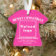 Frohe Weihnachten! Akryler Ornament mit fröhlichen Weihnachtsgrüßtexten, Ihrem Geschäfts- oder Firmennamen, Logo, Adresse und Telefonnummer. Designs sind weiße Texte auf rosa Hintergrund und auf T - Shirt-Form. Ornament zur Dekoration des Weihnachtsbaumes in Ihrem Geschäft, Shop oder Büro. Ornament, um Ihre Kunden in dieser Feriensaison visuell zu begrüßen und Ihr Unternehmen zu werben oder Ihren Markennamen zu fördern. Passen Sie es an und nutzen Sie es, um Markenbewusstsein zu schaffen. Bitte Karo des Erscheinungsbildes nach dem Hochladen von Logos und Schriftzeichen. Wenn Ihnen das Aussehen gefällt, können Sie jetzt Ihre Bestellung aufgeben. Wenn Sie das Logo und die Texte verändern und verschieben müssen, um auf dieses Ornament zu passen, wechseln Sie bitte im Design-Tool. Sie können auch andere Änderungen vornehmen, die Ihren Wünschen entsprechen, z.B. die Farbgestaltung des Ornaments, die Farbe des Schriftartes und der Stil des Schriftartes. Frohe Weihnachten! Wir wünschen Ihnen mehr Umsatz in dieser Feriensaison.