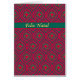 Eine stilvolle Weihnachtskarte mit dem Gruß (Feliz Natal) in portugiesischer Sprache, mit einem allgegenwärtigen Muster von Baustern und Sternen in festlichem Rot und Grün mit goldfarbenen Buchstaben. Sie können auch Ihre eigene Nachricht in die Innenseite der Karte einfügen.