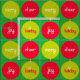 Einfache Kreise rot und grün gemustert, Weihnachtsbaumchen mit festlichen Worten Feiertag fröhlich und fröhlich. Ideal für Weihnachtsnähprojekte.