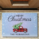 Weihnachtsroter LKW Kariert Familienname Fußmatte