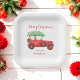 Frohe Weihnachts Red Truck Paper Teller mit grünem Weihnachtsbaum auf einem weißen Hintergrund. Mehr Produkte mit diesem Design sind in der folgenden Kollektion zu finden.