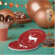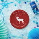Weiße Silhouette eines Hirsches. Von einem Vintagen Stich eines europäischen roten Rotwilds. Die rote Hintergrundfarbe ist kundengerecht.