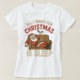 Cartoon Santa entspannt auf dem Sofa, warme Rot- und Cremetöne, humorvolles Motiv, Kontrast von Festtagsfreude und Ruhe; ideal für Weihnachts-Pullover und Lounge-Shirts.
