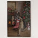 Ein deutscher Hirte mit einem Weihnachtsgeschenk-Strumpf-Set mit einem heimeligen Weihnachtsgefühl.