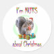 Viel Spaß mit Weihnachten mit diesem niedlichen Eichhörnchen, das eine Nuss mit einem Bogen hält und eine Weihnachtsmannmütze Sprichwort trage ich Nüsse Über Weihnachten.