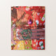 Ein Foto von einem Weihnachtsgeschoss mit roten Weihnachtsgeschenken unter einem Weihnachtsbaum während der Weihnachtsfeiertage, die hell und farbenfroh auf einem PUZZLE.