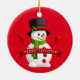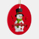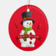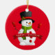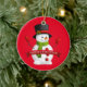 Weihnachtsschmuck in runder Form und besteht aus Porzellan mit roter Hintergrundfarbe und festlichem Schneemobil. Passen Sie dieses Objekt an oder kaufen Sie, wie es ist.