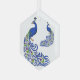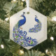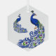 Dieses Weihnachtsschmuck ist in der sechseckigen Glasform mit weißer Hintergrundfarbe und einem hübschen Pfauen-Druck zu sehen. Passen Sie dieses Objekt an oder kaufen Sie, wie es ist.
